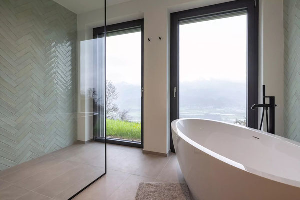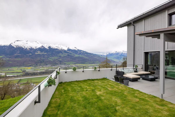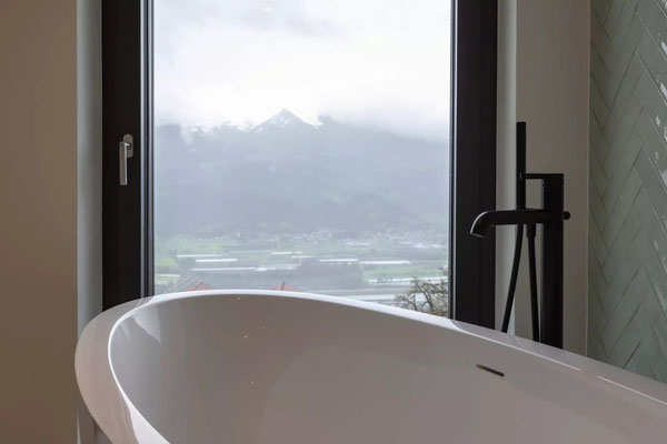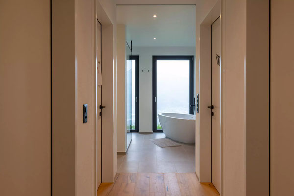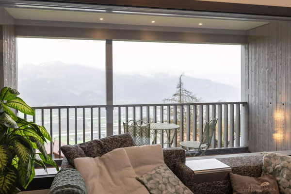 Bereits beim Betreten des Hauses wird man von der Aussicht begrüsst – und auch beim Kochen, beim Entspannen auf dem Sofa oder einem der Balkone, beim Duschen oder Baden und sogar im Bett ist sie ein ständiger Begleiter.
